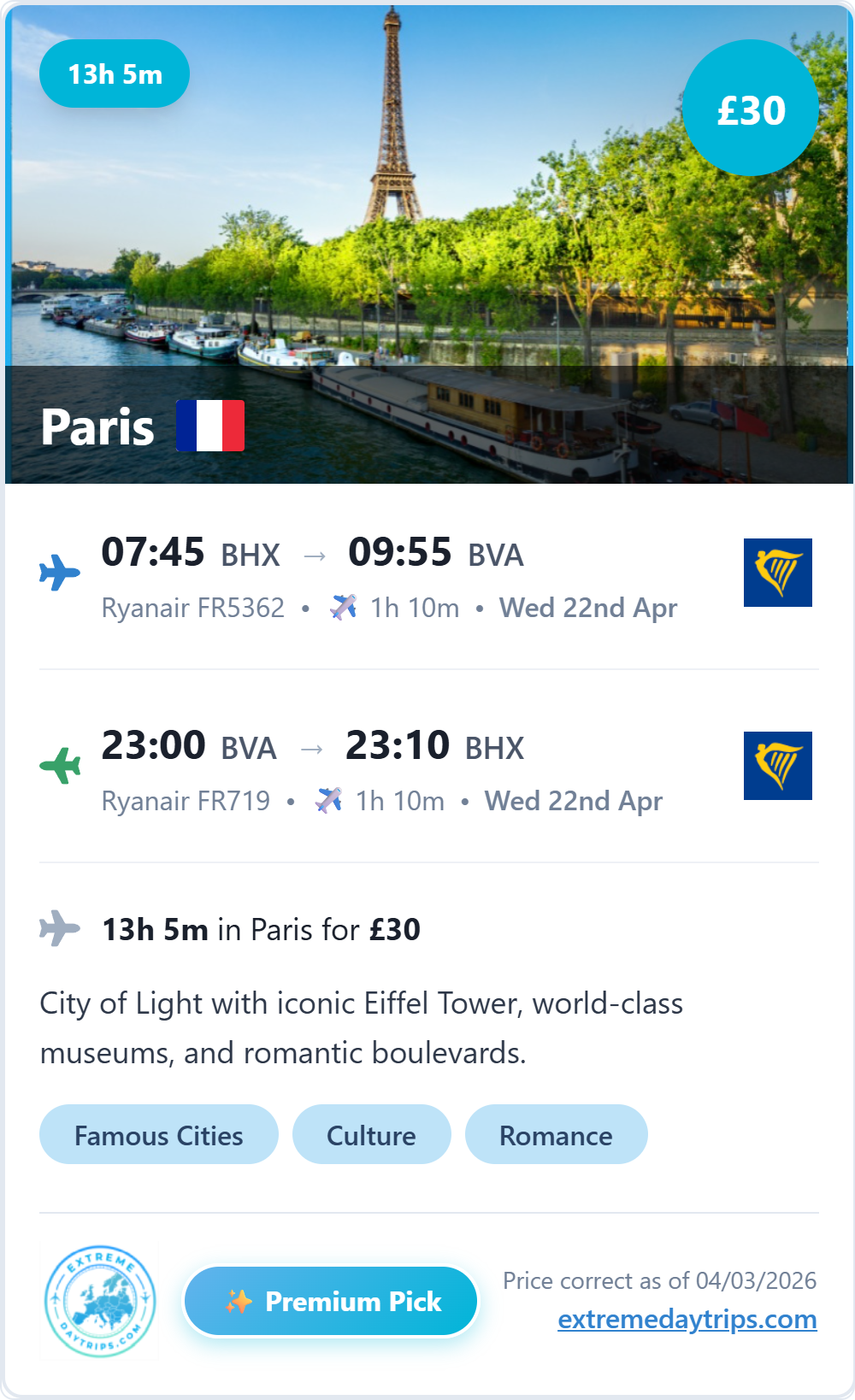 Extreme Day Trip = Early flight out to Europe + Late flight back (No hotel needed) 🗺️